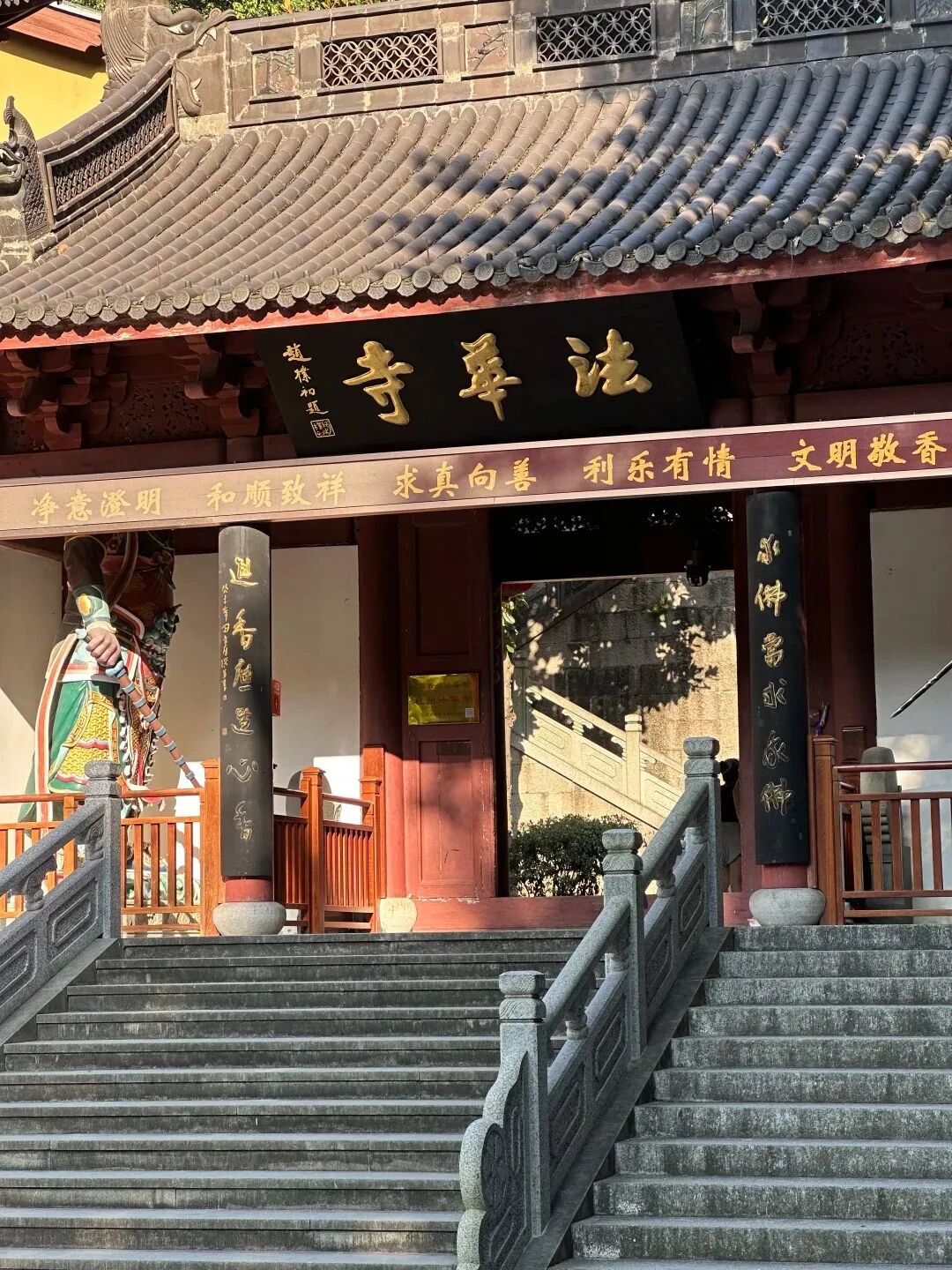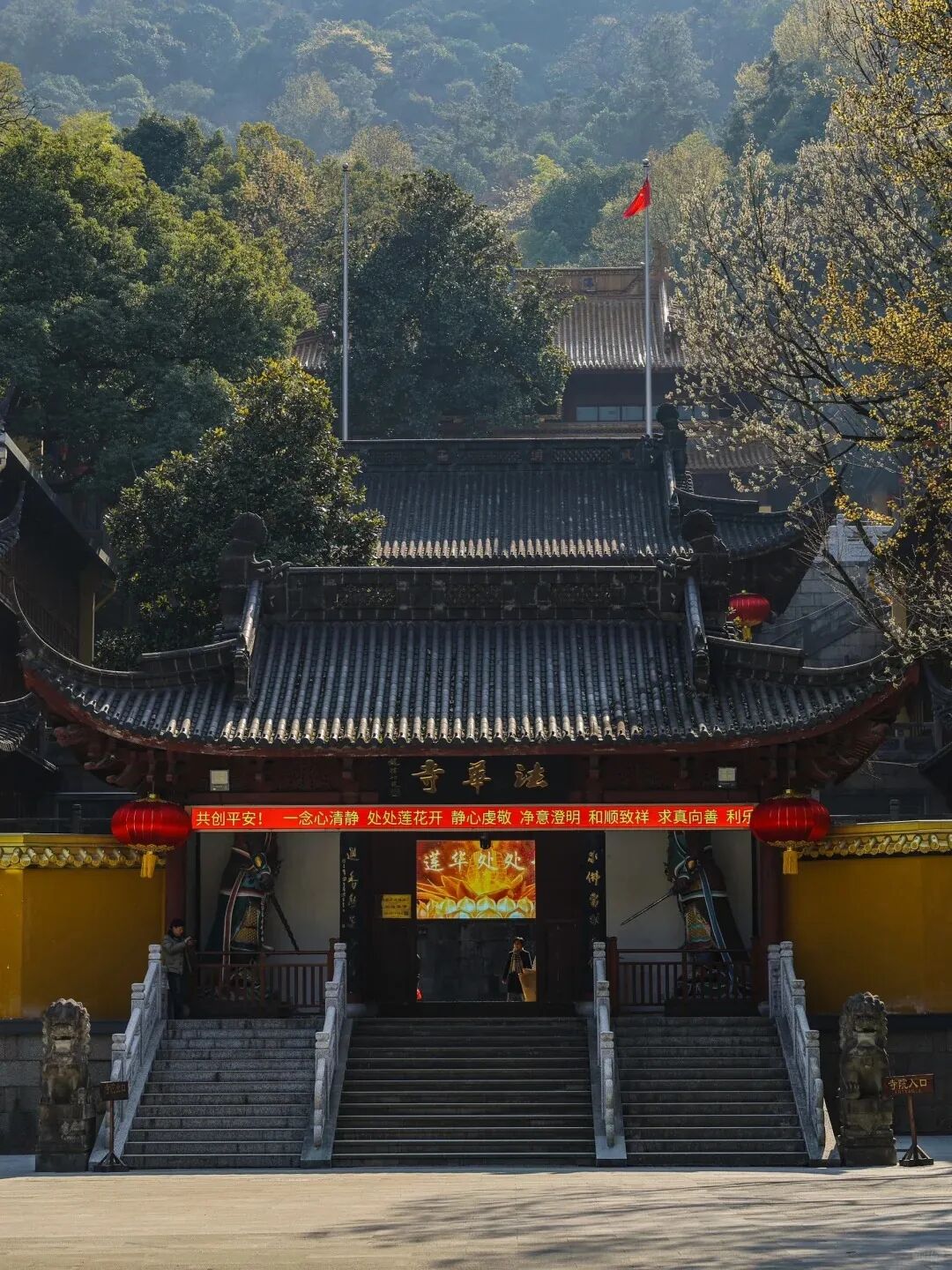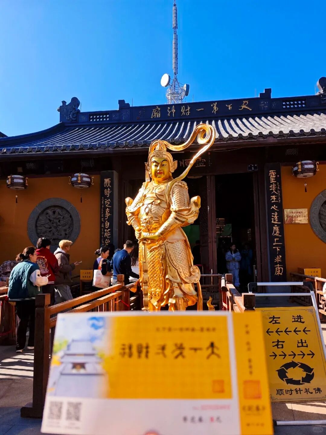 10:30 到达徒步起点[王家坞],下车后我们路过东岳庙到达[法华寺],正对门外有一方照壁,在它右侧是一座释伽牟尼真身舍利塔,在左侧则是前佛教协会会长赵朴初居士的骨塔,将近100年前,中国佛教总会筹立之初,法华寺是发起地之一,之后前往[天下第一财神庙],位于西湖区北高峰的"灵顺寺",寺庙建于公元326年(东晋咸和年间),是杭州最早的名刹,北高峰观景平台,可以拍到西湖全景。(备注:灵顺寺门票8元,现场购买。)