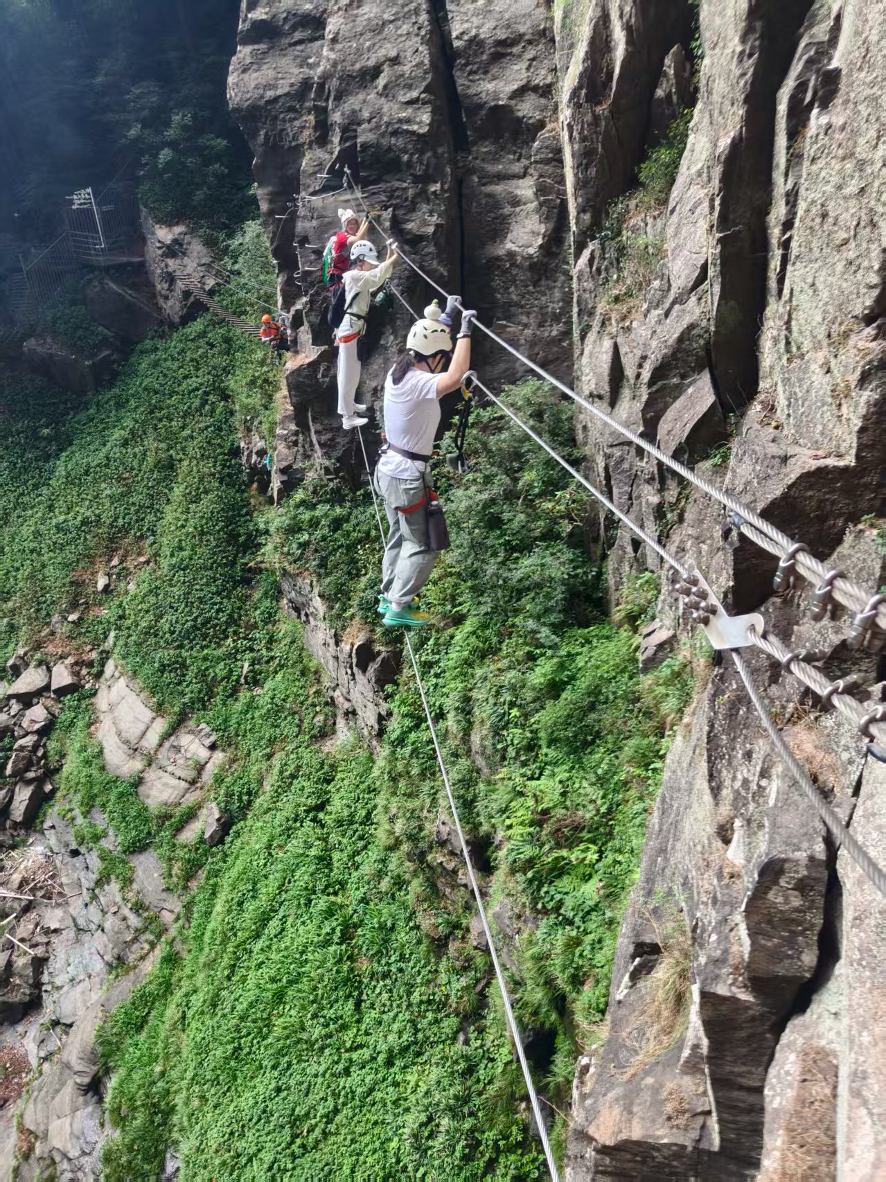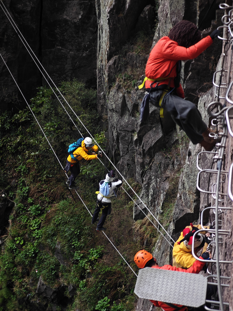 飞拉达:由扶手横梯、固定缆索、岩石塞、踏脚垫等构成的爬山径道,让没有攀岩能力的爬山者也能在陡峭的岩壁上行走。