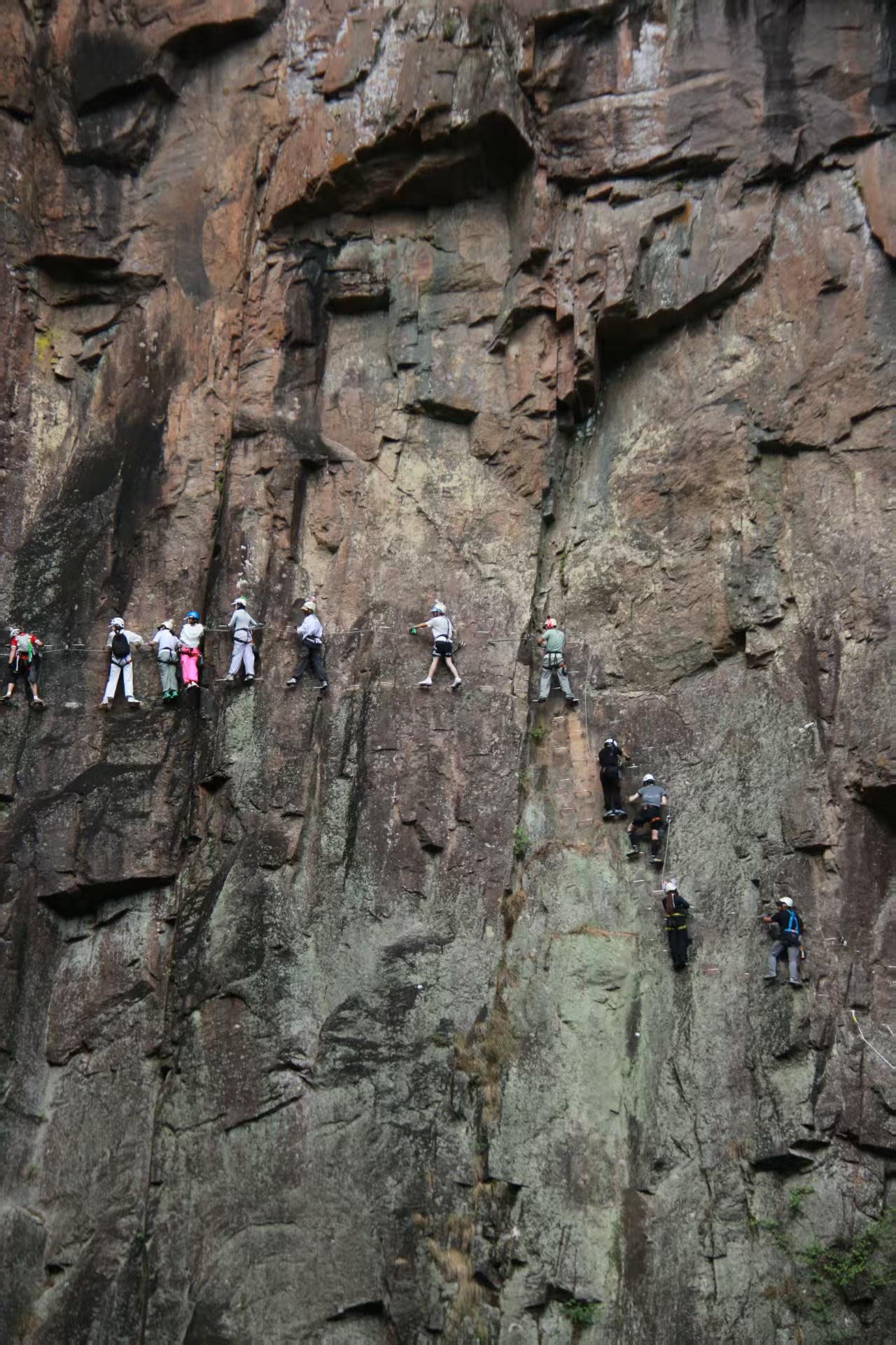 徐凫岩飞拉达,激情飞拉达,绝壁上的舞蹈,感受飞檐走壁,肾上腺素飙升。飞拉达,也叫铁道式攀岩,是人为建造的一种修建在岩壁上,利用铁索,脚蹬的辅助,进行峭壁攀爬的极限攀岩运动惊险和刺激程度一直是非专业攀岩群体热衷的一种自我挑战方式。天然攀岩是一个相对而言比较困难的运动,所以就有了飞拉达,一个全民皆可体验的户外攀岩刺激运动,练习如何正确攀岩并且凹出空中造型,虽说全民皆可攀,对初次体验者也是个小小的挑战,不管是身体的耐力还是对高度的恐惧只要过了心里这关,相信你会真正爱上攀岩!