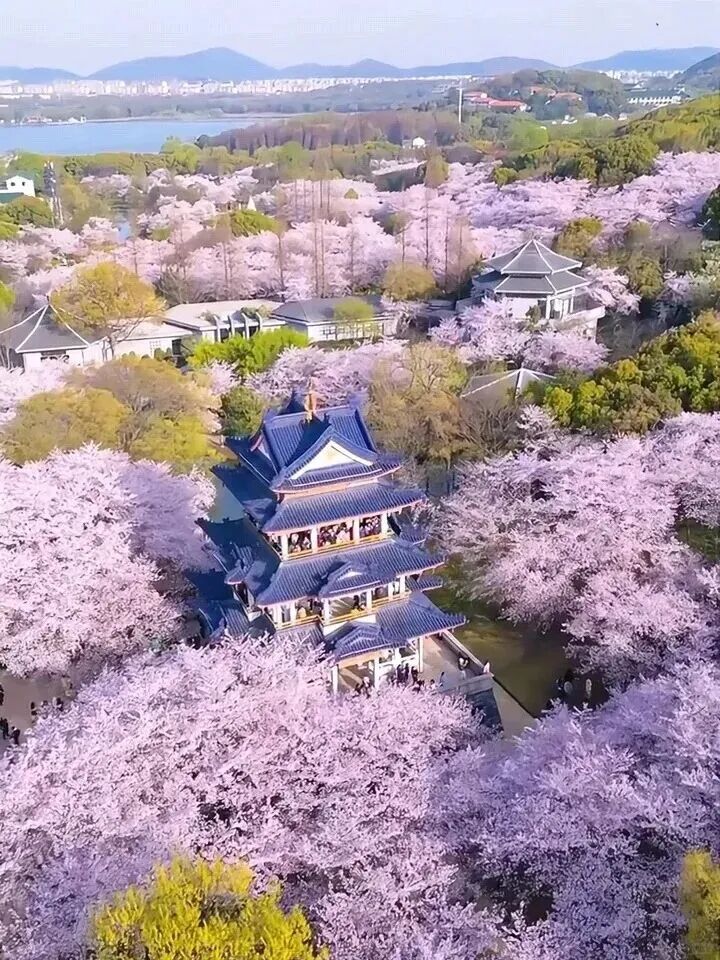 核心赏樱路线:临水而立的长春桥--长春花漪--具区胜境和诵芬堂,长春桥洞映日呈圆形,每当堤边的樱花盛放,就会倒映在湖面上,形成“长春花漪“的独特景观,水波带着花影泛起阵阵涟漪,如同置身于漫画中拍照打卡。顺着樱花路,接着来到樱花谷看国内规模最大的樱花园,上万株樱花浪漫齐放。登上“赏樱阁“向下俯瞰,望见漫山遍野粉色花海,美不胜收。在里面看樱谷流芳,樱花谷两畔樱树错落,每到盛花期,树下落英缤纷,花瓣飘到水面上随溪流而动,就会形成“樱谷流芳“的美景~接着登上出片率榜首鹿顶迎辉拍照留念,俯瞰樱花林~