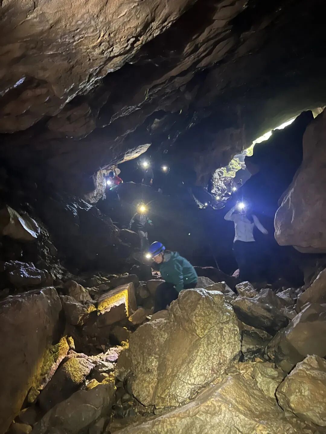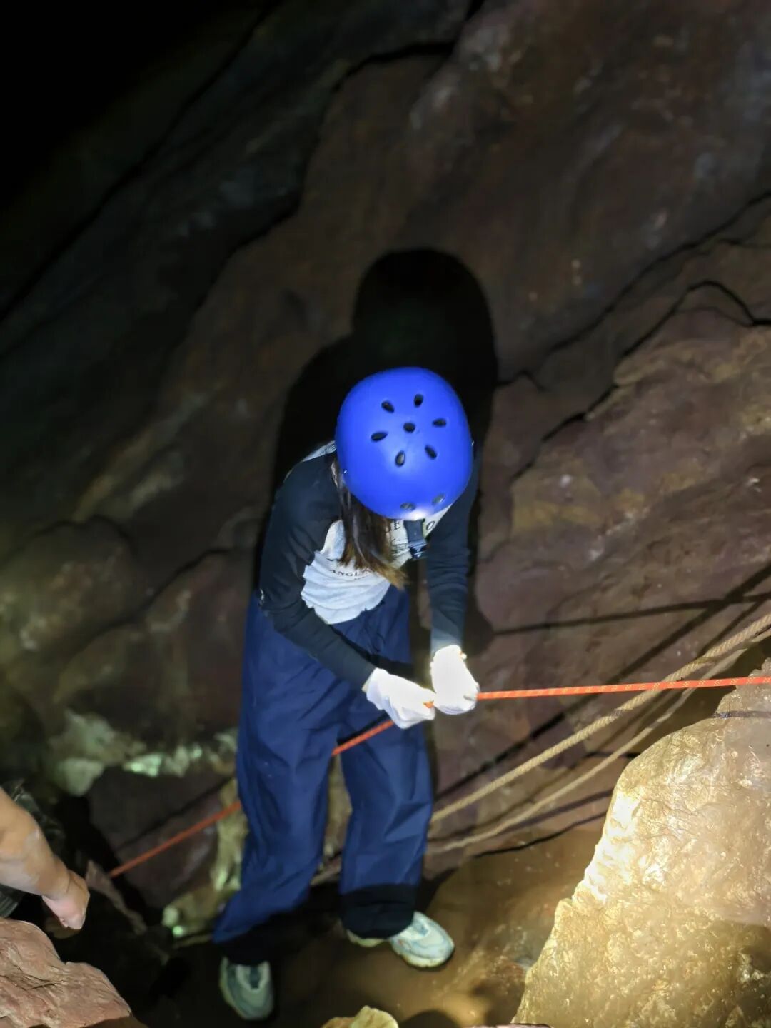 俱乐部提供每人一顶头盔,仙人洞内照明设备自带